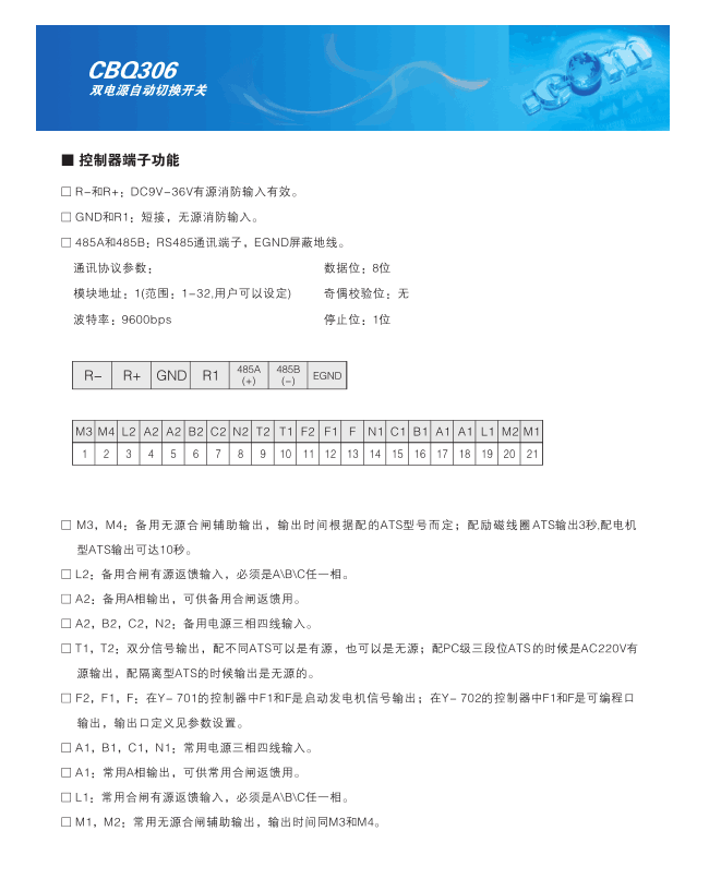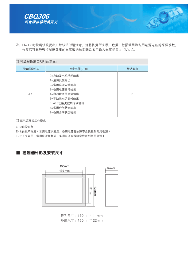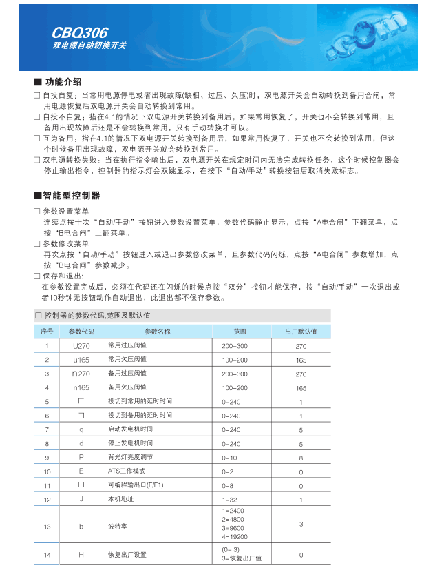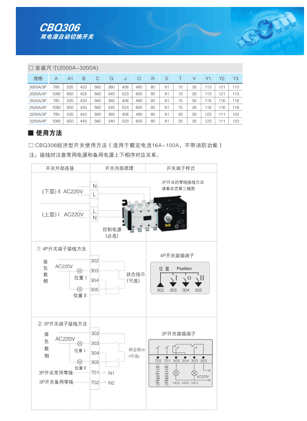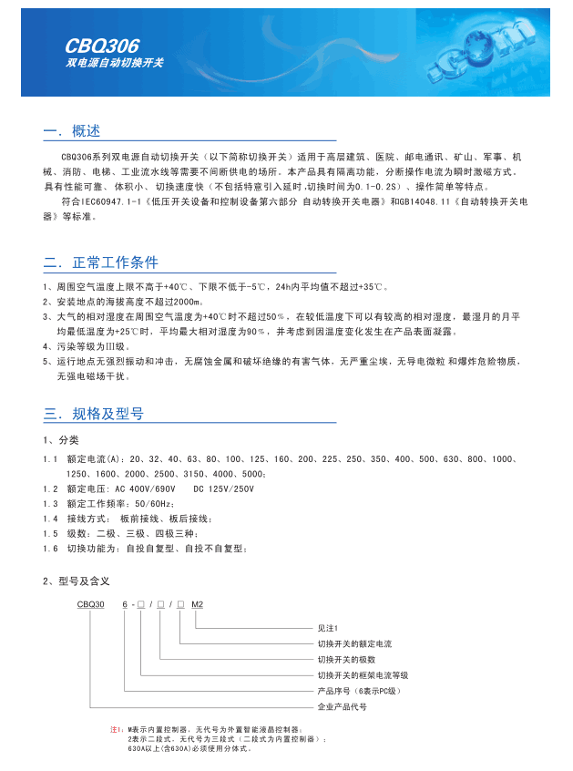 CBQ306系列双电源自动切换开关